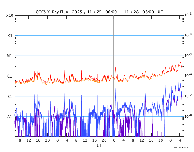 GOES衛星の太陽X線強度。赤・橙 = 0.1〜0.8 nm、青・紫 = 0.05〜0.4 nm (c) データ:NOAA/SWPC、作図:宇宙天気ニュース ![]() | ||||||||||||||||||||||||||||||||||||||||||||||||||||||||||||||||||||||||||||||||||||||||||||||||||||||||||||||||||||||||||||||||||||||||||||||||||||||||||||||||||||||||||||||||||||||||||||||||||||||||||||||||||||||||||||||||||||||||||||||||||||||