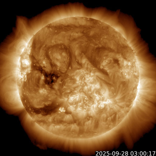 東側(左側)の赤道付近と南半球側にコロナホールが見えています。
