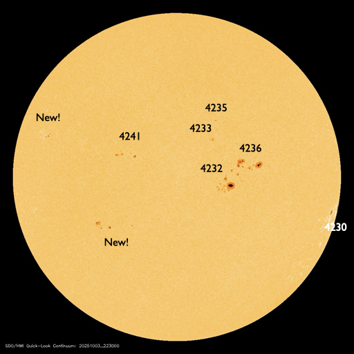 太陽は、中心部北西側(右上)の4236黒点群で、