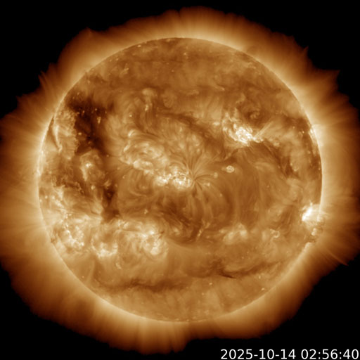 コロナホールは北西の端(右上)に達していて、見にくくなっています。