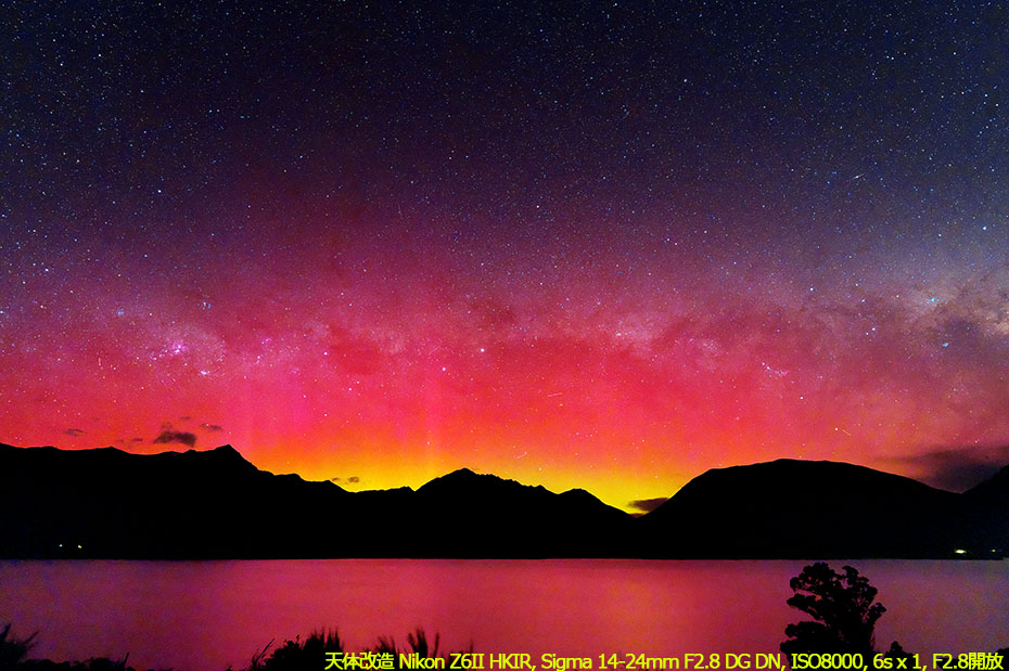 ニュージーランド南島クィーンズタウンで、現地10月19日0時18分(世界時18日11時18分)に撮影されたオーロラ。