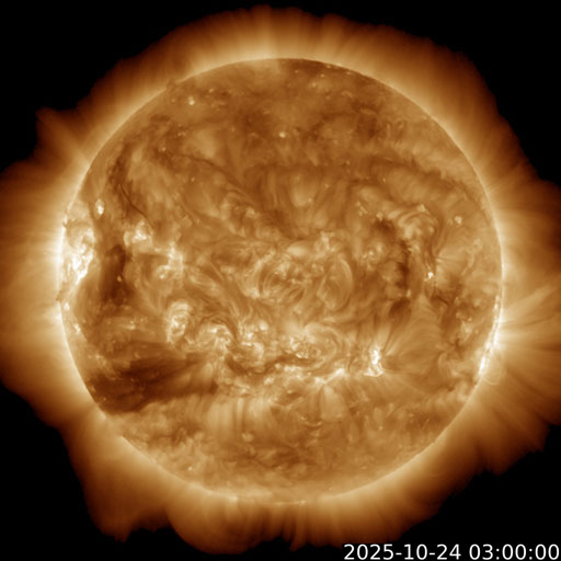 2025/10/20 10:18 高速の太陽風が続いています。太陽は穏やかになりそうです。