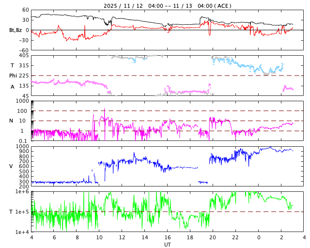 ACE衛星で次の太陽風の強まりが観測されました。