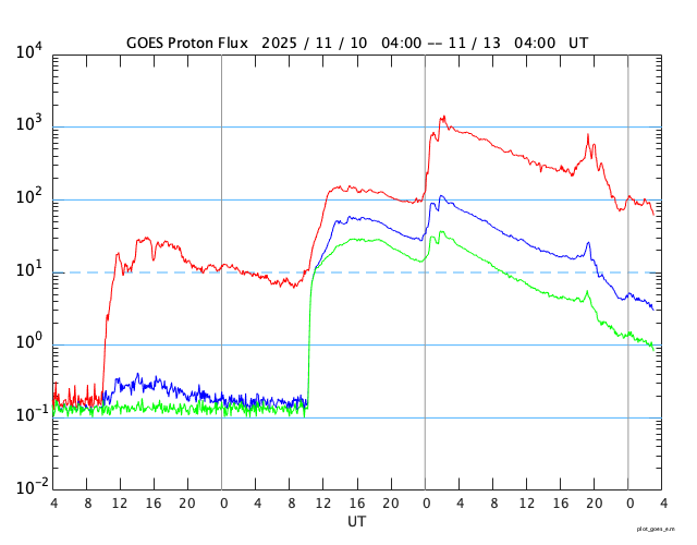 太陽からの高速陽子(太陽放射線)の高まりにより、