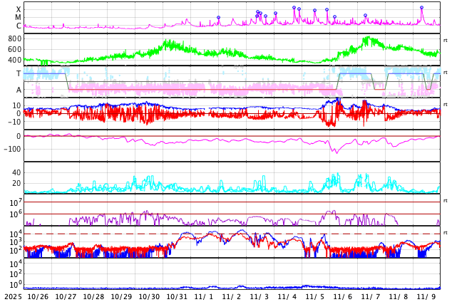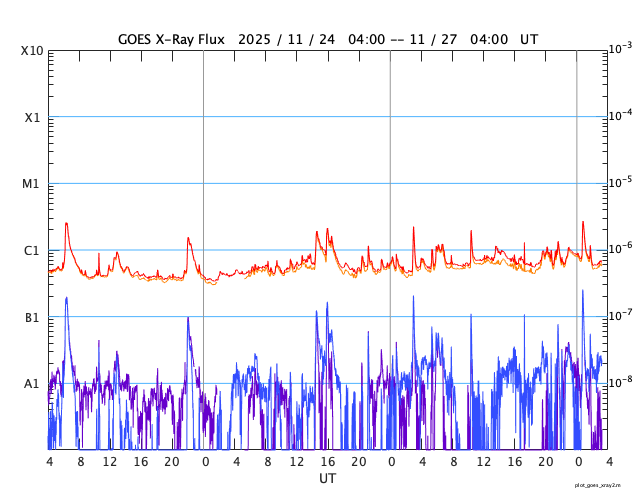 GOES衛星の太陽X線強度。赤・橙 = 0.1〜0.8 nm、青・紫 = 0.05〜0.4 nm (c) データ:NOAA/SWPC、作図:宇宙天気ニュース ![]() | |||||||||||||||||||||||||||||||||||||||||||||||||||||||||||||||||||||||||||||||||||||||||||||||||||||||||||||||||||||||||||||||||||||||||||||||||||||||||||||||||||||||||||||||||||||||||||||||||||||||||||||||||||||||||||||||||||||||