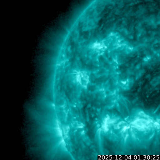 (c) 黒点データ:WDC-SILSO、作図:宇宙天気ニュース ![]() 11月の太陽黒点の推移。 (c) SDO衛星HMII (NASA)、(動画加工 : 宇宙天気ニュース) ![]() 1975年以降の太陽黒点相対数の長期変化。 (c) 黒点データ:WDC-SILSO、作図:宇宙天気ニュース ![]() 4300黒点群で発生した、M6.0の中規模フレア。 (c) GOES衛星SUVI 131 (NOAA)、(動画加工 : 宇宙天気ニュース) ![]() GOES衛星のSUVI 195カメラによる太陽コロナの様子 (c) NOAA/SWPC ![]() SDO衛星による太陽の可視光写真(SOHO衛星の画像ページより取得)。 マウスの矢印を写真に重ねると、黒点番号付きの写真に切り替わります。 (c) SDO (NASA) ![]() ACEが観測した太陽風の磁場(黒線は全体の強度、赤線は南北成分) 磁場の向き、プラズマの密度、速度、温度 (c) データ:NOAA/SWPC、作図:宇宙天気ニュース ![]() AE指数(速報値) 下段のAEグラフの値が高くなると、オーロラ活動が活発化しています。 (c) 京都大学WDC ![]() ![]() 27日の太陽周期に合わせた図 太陽が同じ面を地球に向けていた27日前の変化から、今後を予想することができます。 (c) 作図:宇宙天気ニュース