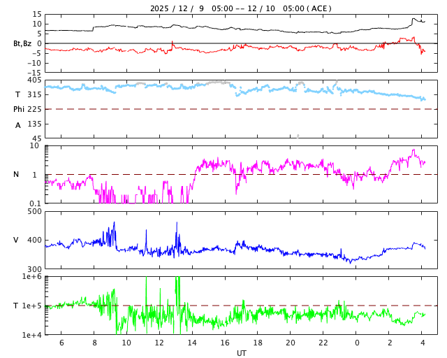 2025/12/ 5 12:53 太陽風は、620km/秒と高速の状態が続いています。