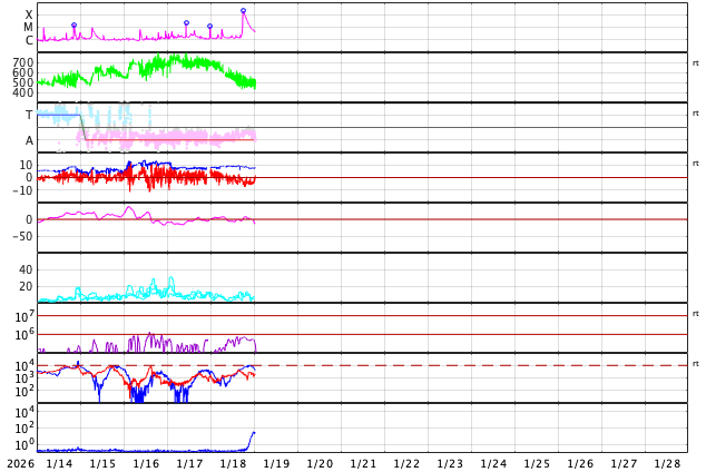 GOES衛星による、静止衛星軌道における高エネルギー陽子の変化 (c) データ:NOAA/SWPC、作図:宇宙天気ニュース ![]() | |||||||||||||||||||||||||||||||||||||||||||||||||||||||||||||||||||||||||||||||||||||||||||||||||||||||||||||||||||||||||||||||||||||||||||||||||||||||||||||||||||||||||||||||||||||||||||||||||||||||||||||||||||||||||||||||||||||||||||||||||||||||||||||||||||||||||
