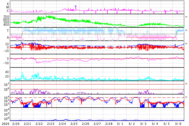 放射線帯電子が非常に強くなっています。太陽放射線は静穏です。