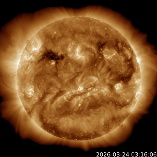 2026/ 3/22 10:40 太陽風は500km/秒と高速の状態が続いています。