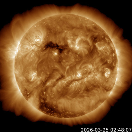 北西(右上)のコロナホールは斜めになって見にくくなっています。