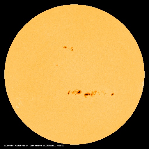 による太陽の可視光写真(SOHO衛星の画像ページより取得)。