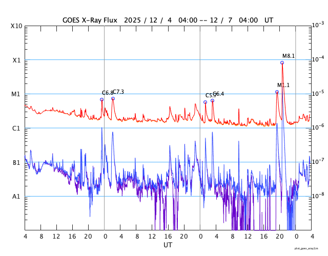 太陽風は600km/秒と高速の状態が続いています。M8.1の中規模フレアが発生しました。