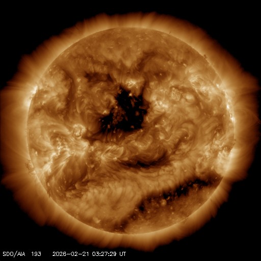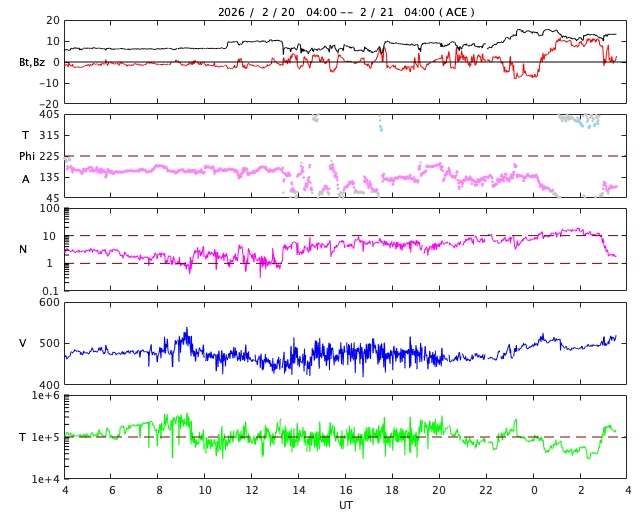 太陽風の速度は500km/秒に高まっています。太陽は穏やかで、無黒点寸前です。