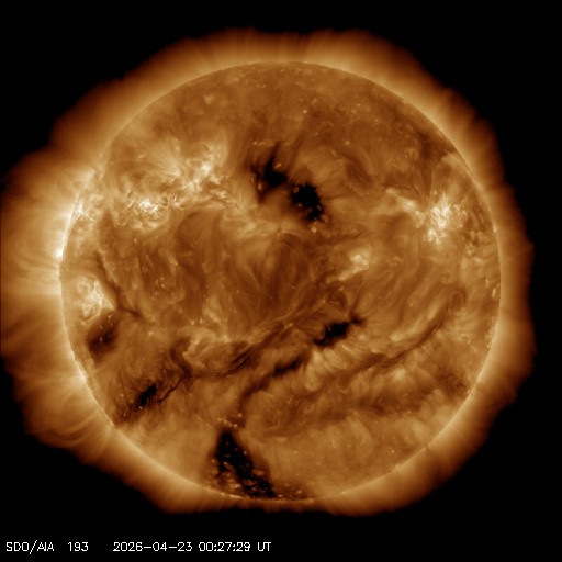 - 2026/ 4/22 13:09 太陽風は500km/秒と高速の状態が続いています。太陽で小規模フレアが続いています。