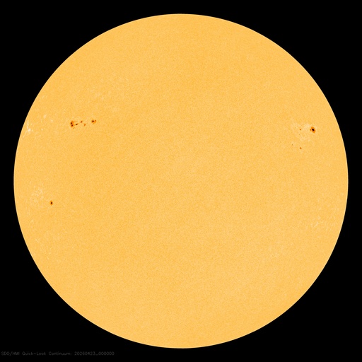 - 2026/ 4/20 14:12 太陽風は平均的な速度に下がっています。太陽は穏やかです。